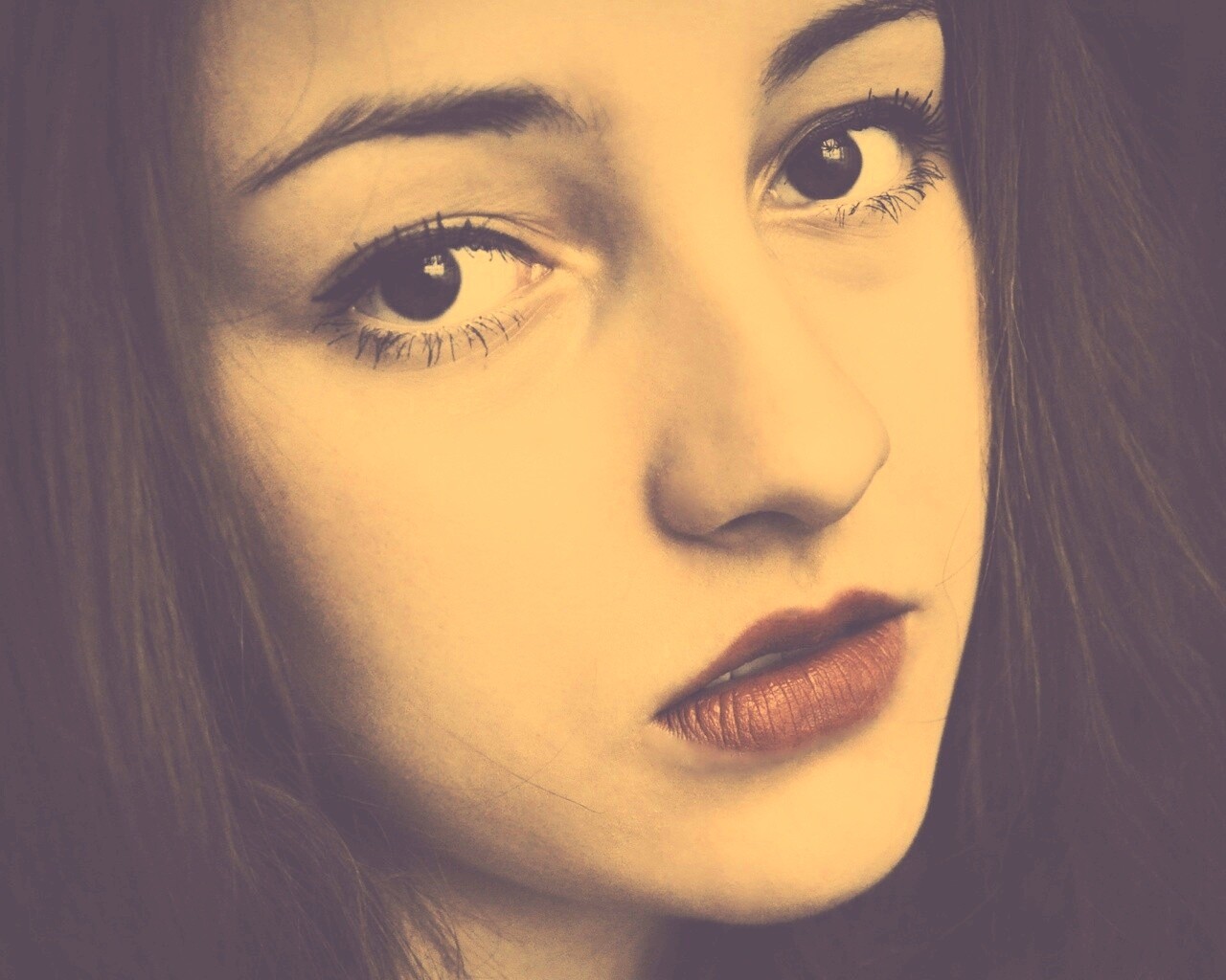 «Брюнетка с ярким макияжем и печальным лицом»