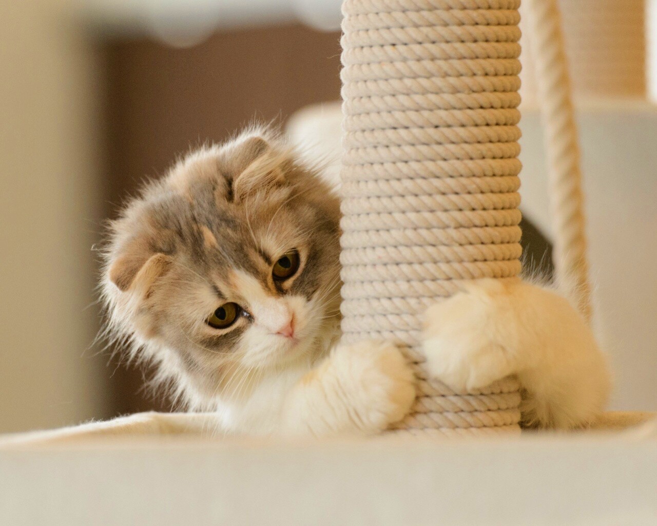 «Пушистая кошка с когтеточкой»