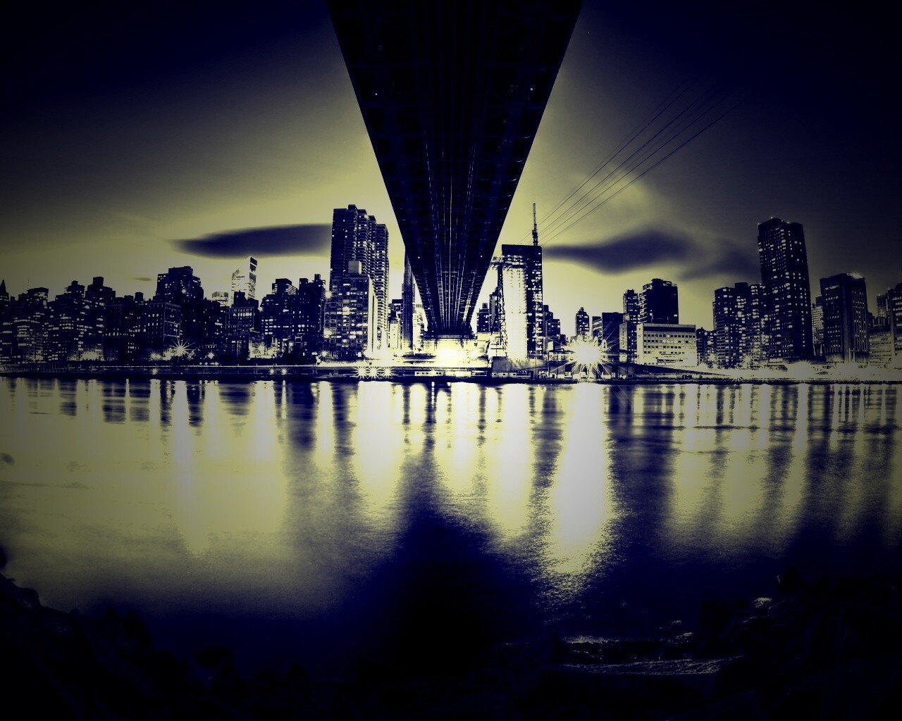 «Вид на Остров Рузвельта из-под моста Квиснборо»