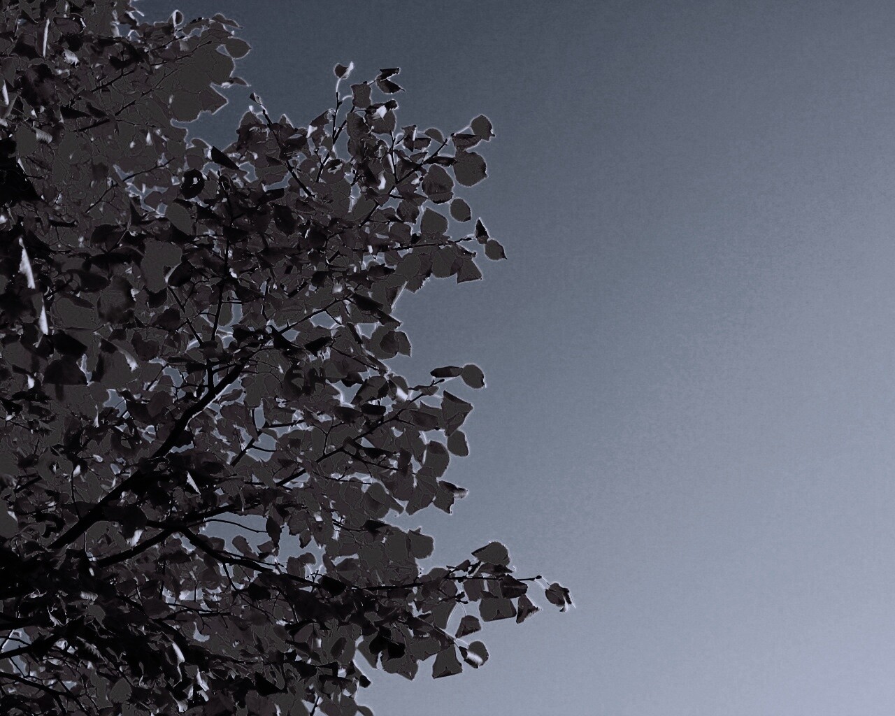 «Ветви с пожелтевшими листьями на фоне неба»