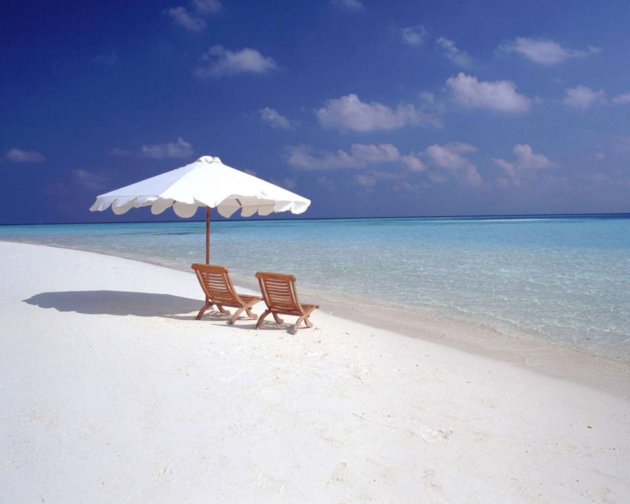 «Песчаный пляж с двумя жезлонгами»