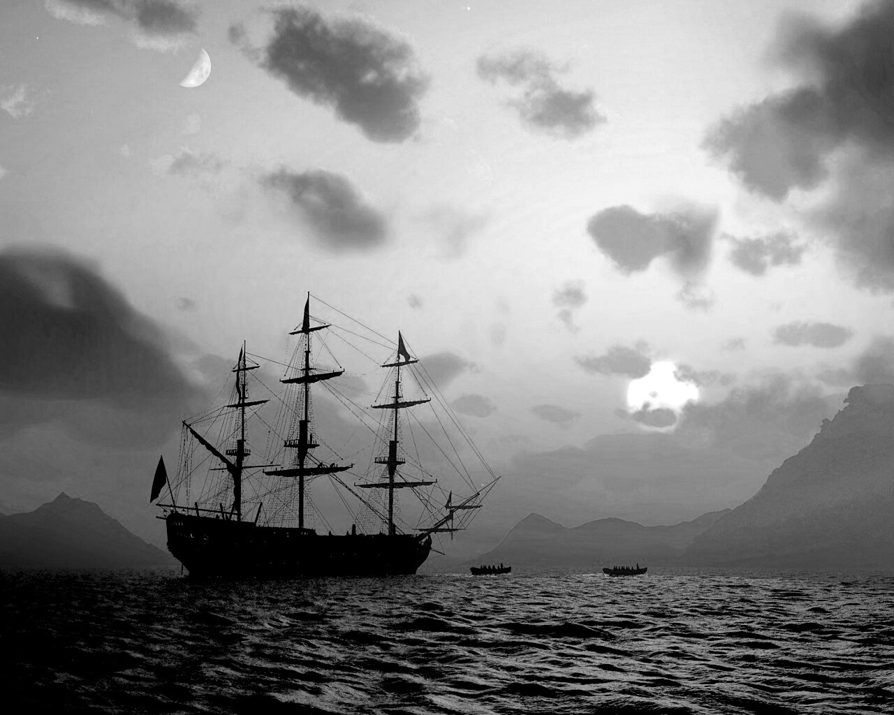 «Трехпалубный парусный корабль на закате»