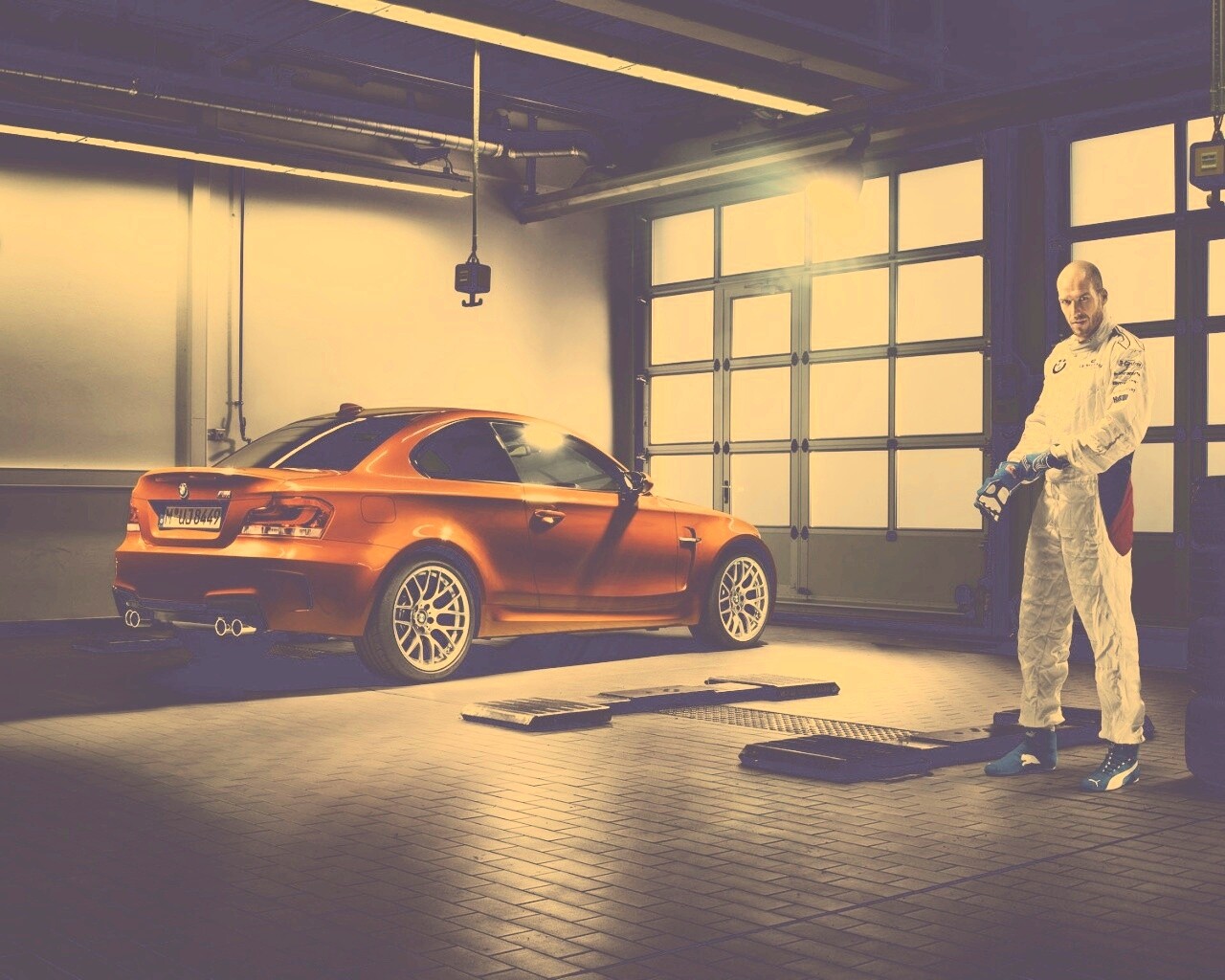 «Гонщик и BMW M1 в гараже»