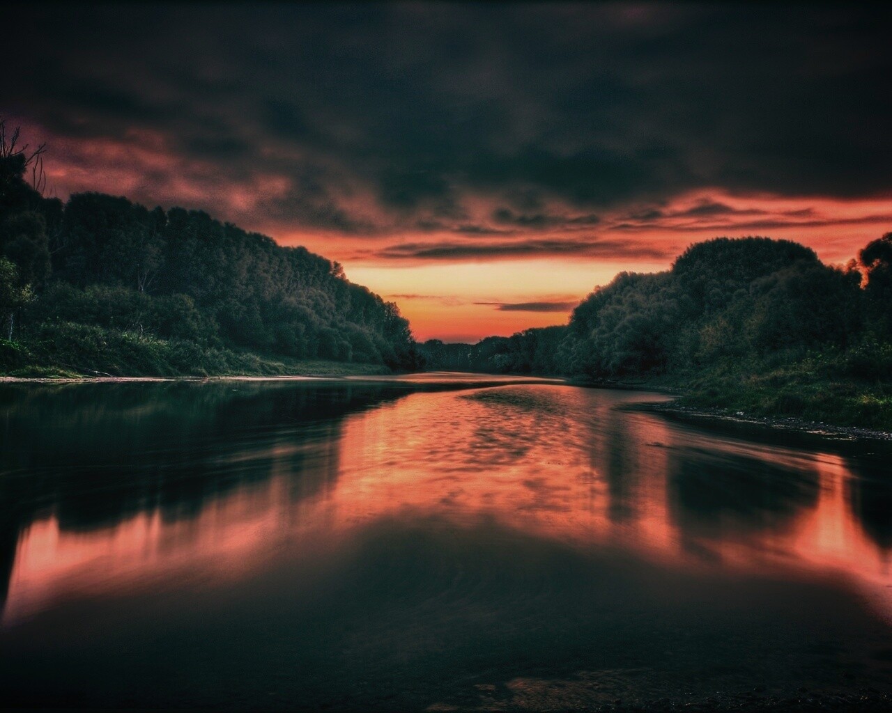 «Багровый закат и водная гладь»