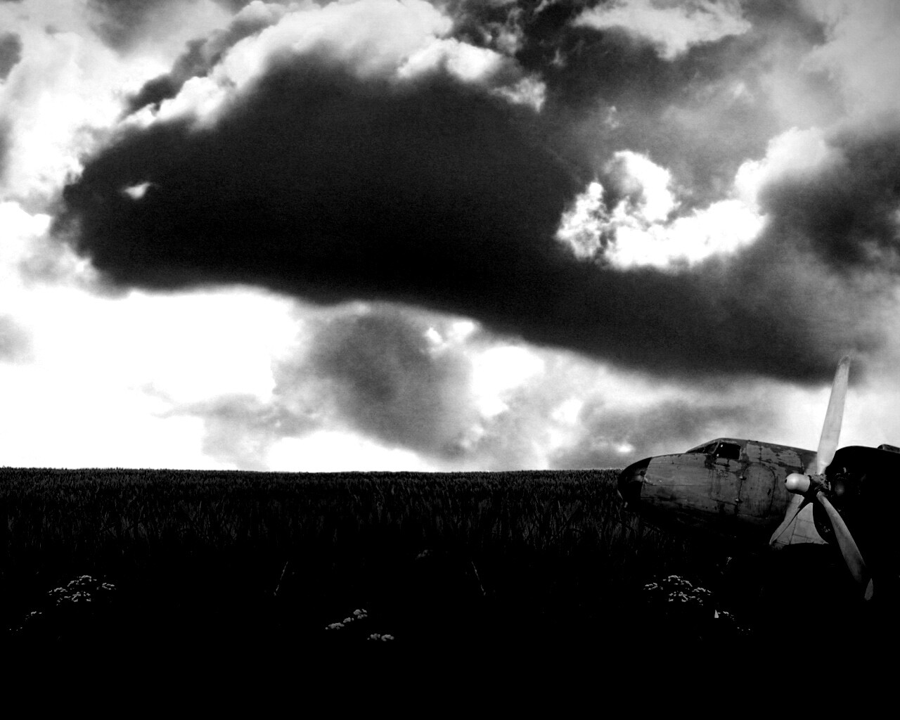 «Старый ржавый самолет на лугу»