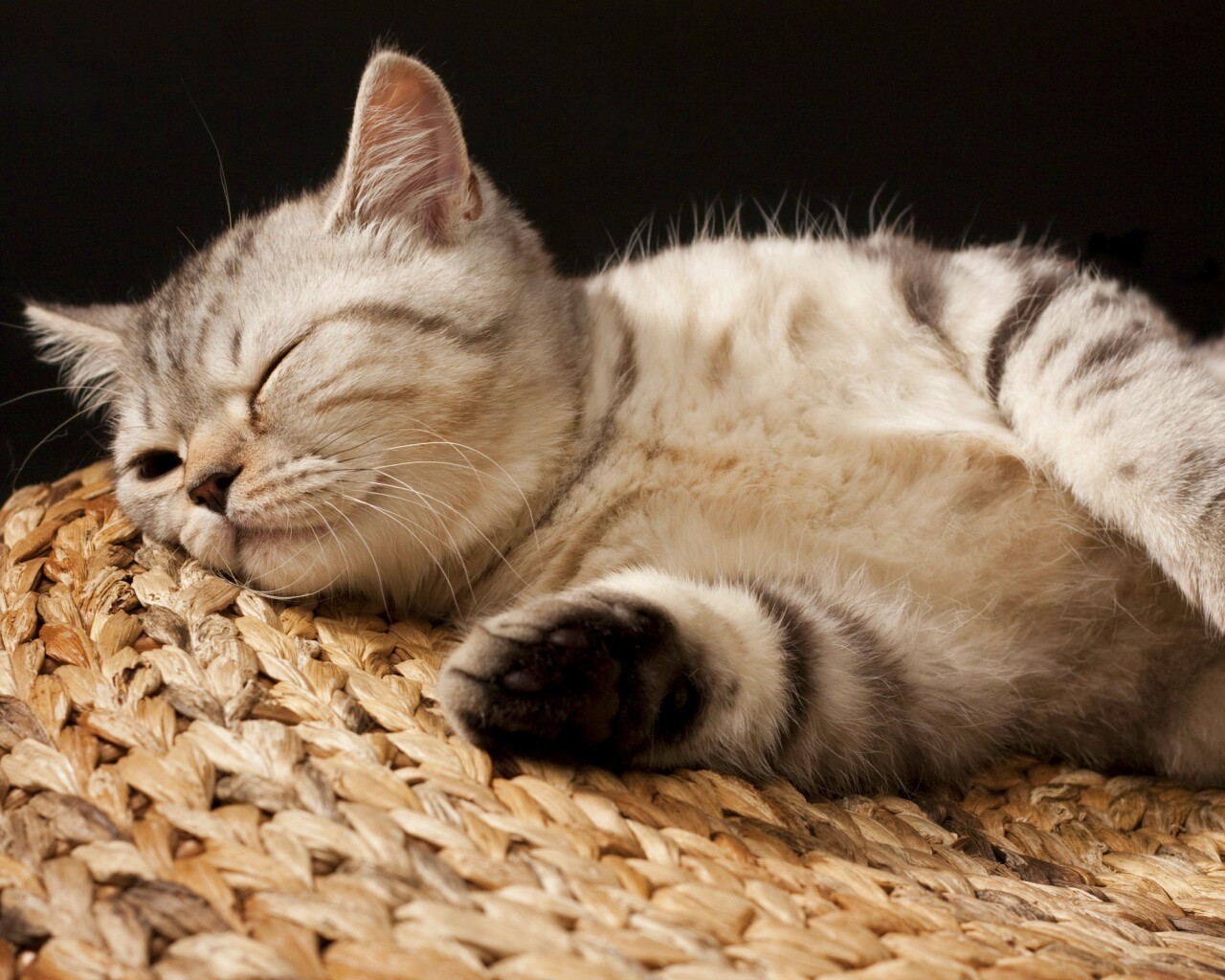 «Пушистый кот спит на корзине»