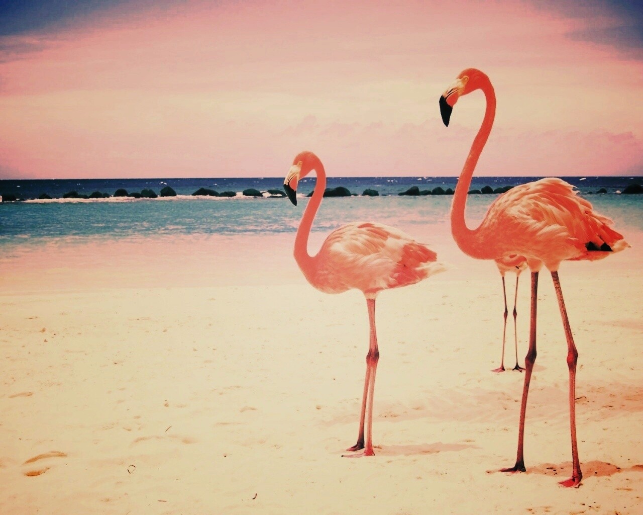 «Розовые фламинго на пляже»