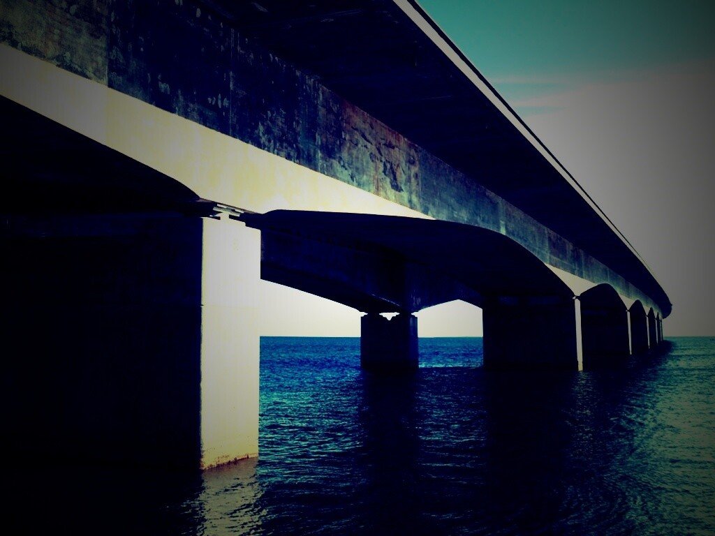Обои для рабочего стола «Опоры моста» 1024х768 с фильтром lomo (оригинал 2560х1024)
