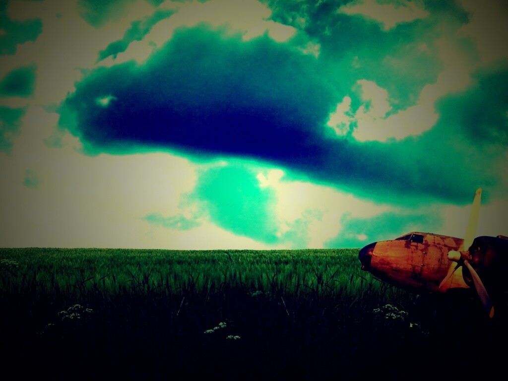 «Старый ржавый самолет на лугу»