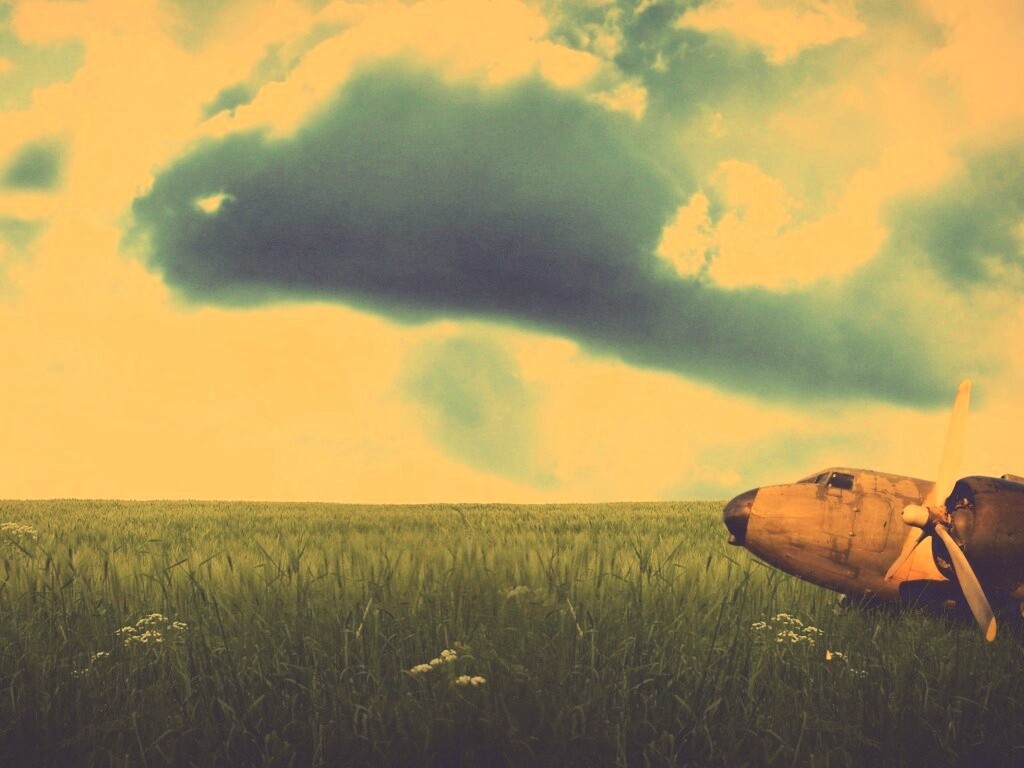 «Старый ржавый самолет на лугу»