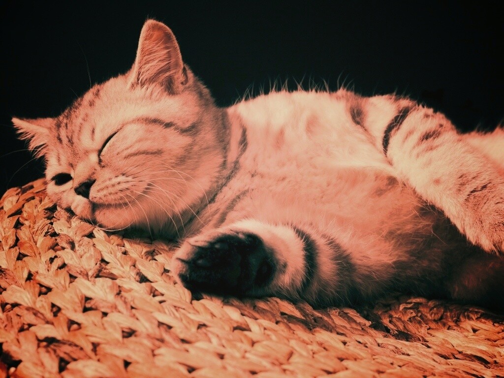 «Пушистый кот спит на корзине»