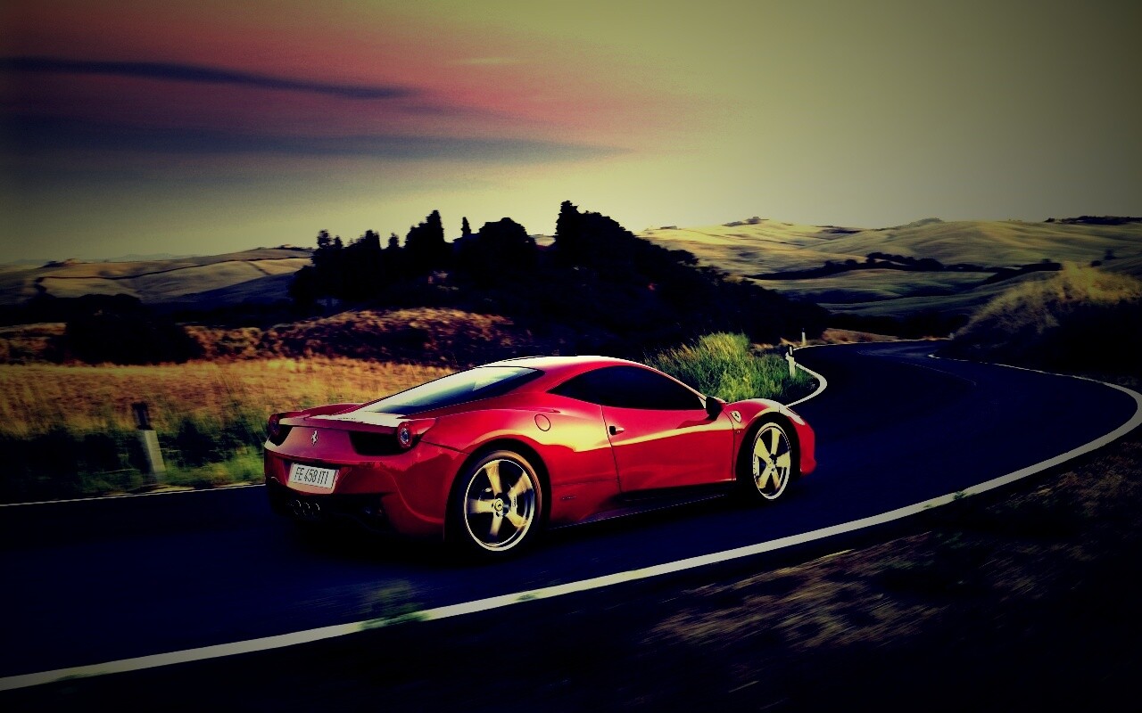 «Красная феррари на извилистой дороге»