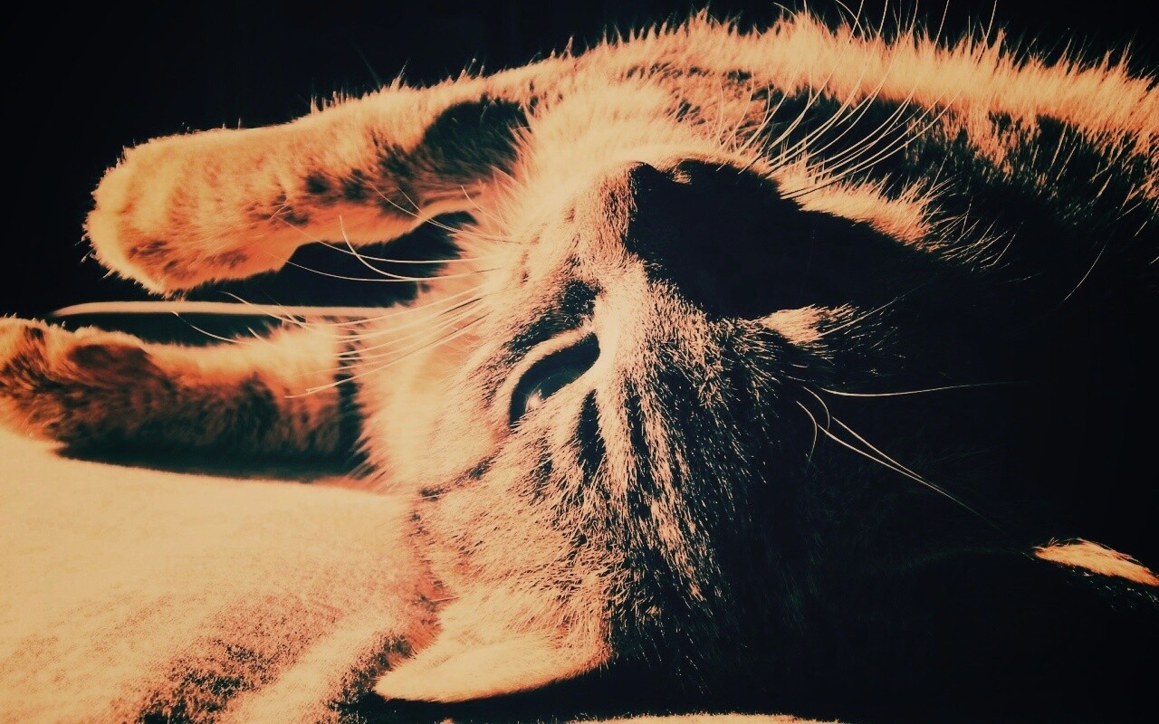 Обои для рабочего стола «Нежащийся кот» 1280х800 с фильтром earlybird (оригинал 2048х1536)