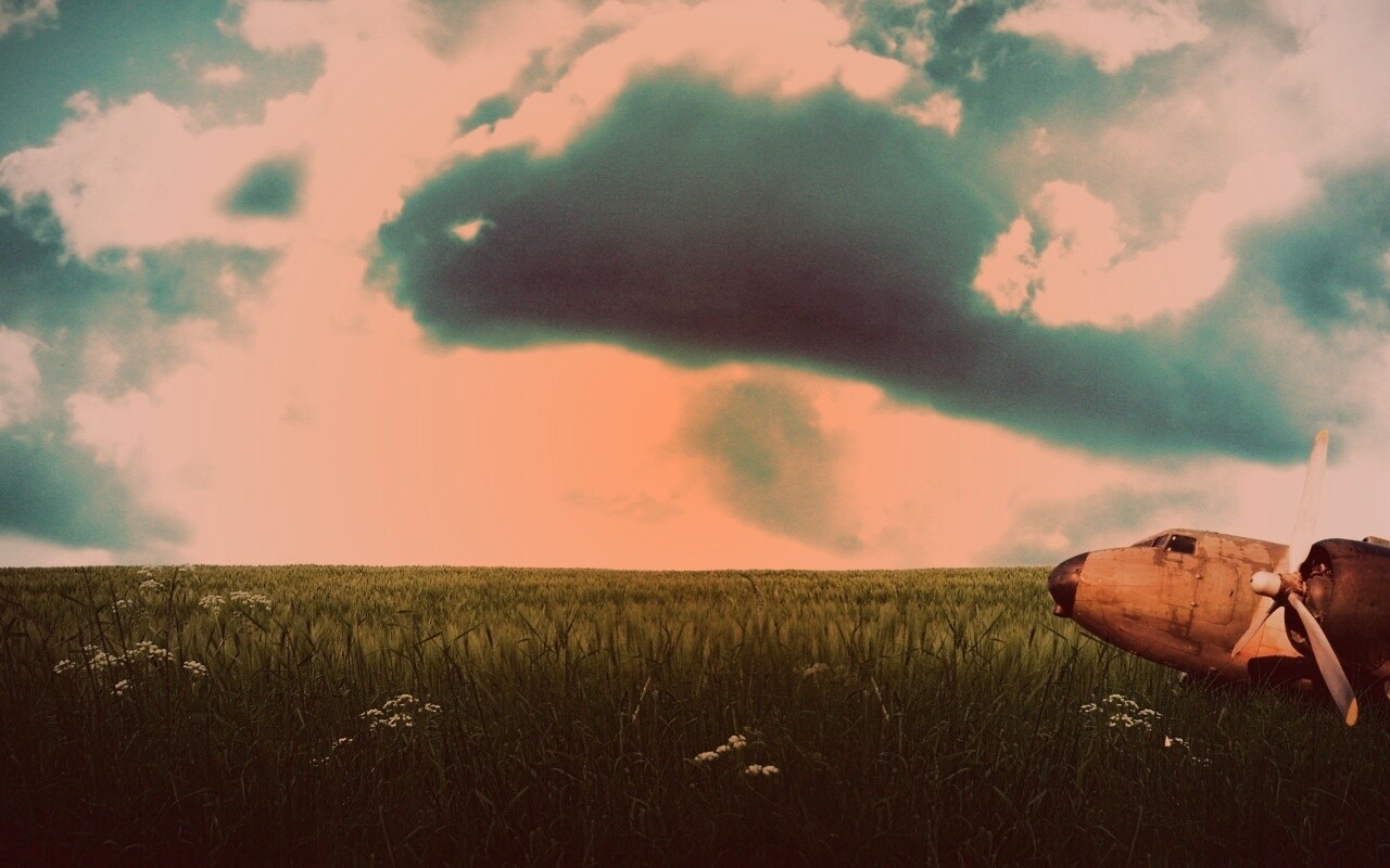 «Старый ржавый самолет на лугу»