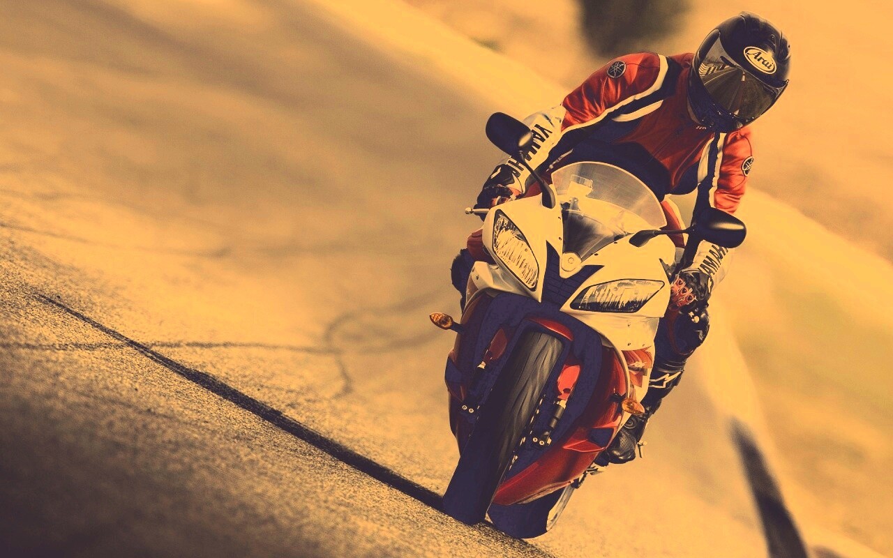 Обои для рабочего стола «Мотоциклист на спортбайке» 1280х800 с фильтром nashville (оригинал 1920х1200)