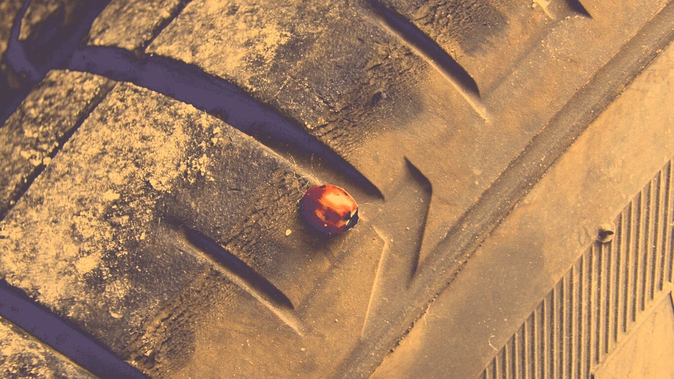 «Божья коровка на автомобильной покрышке»