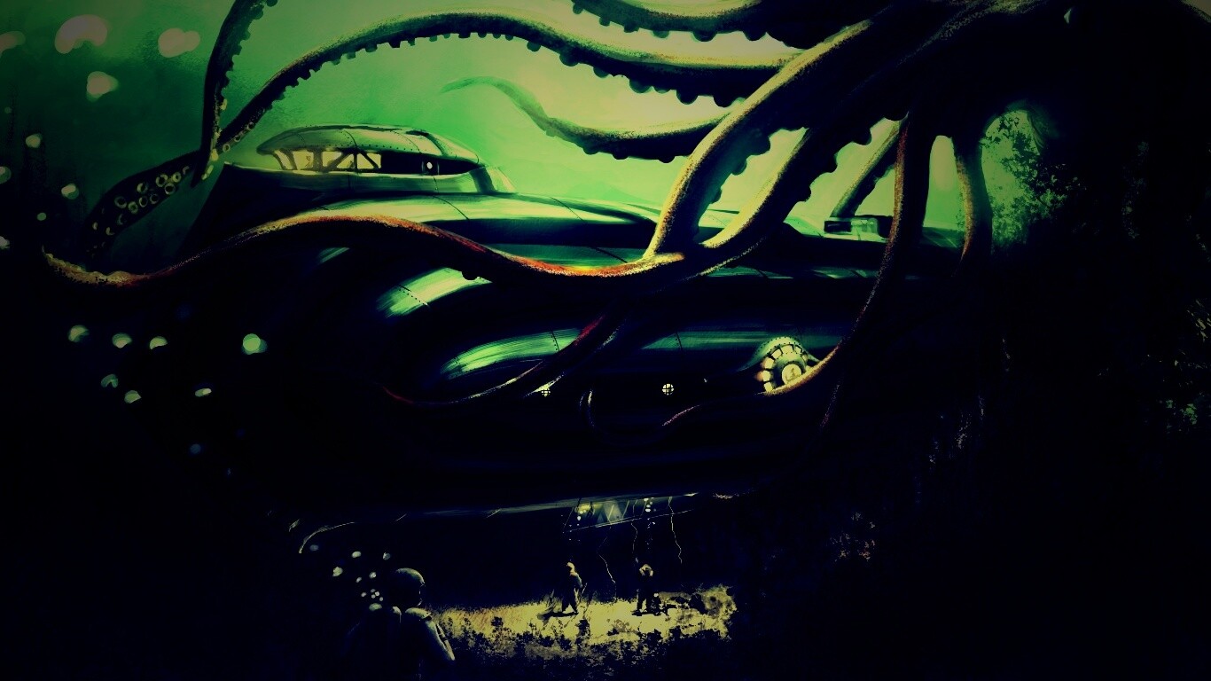 Обои для рабочего стола «Наутилус в плену щупалец» 1366х768 с фильтром lomo (оригинал 4000х2176)