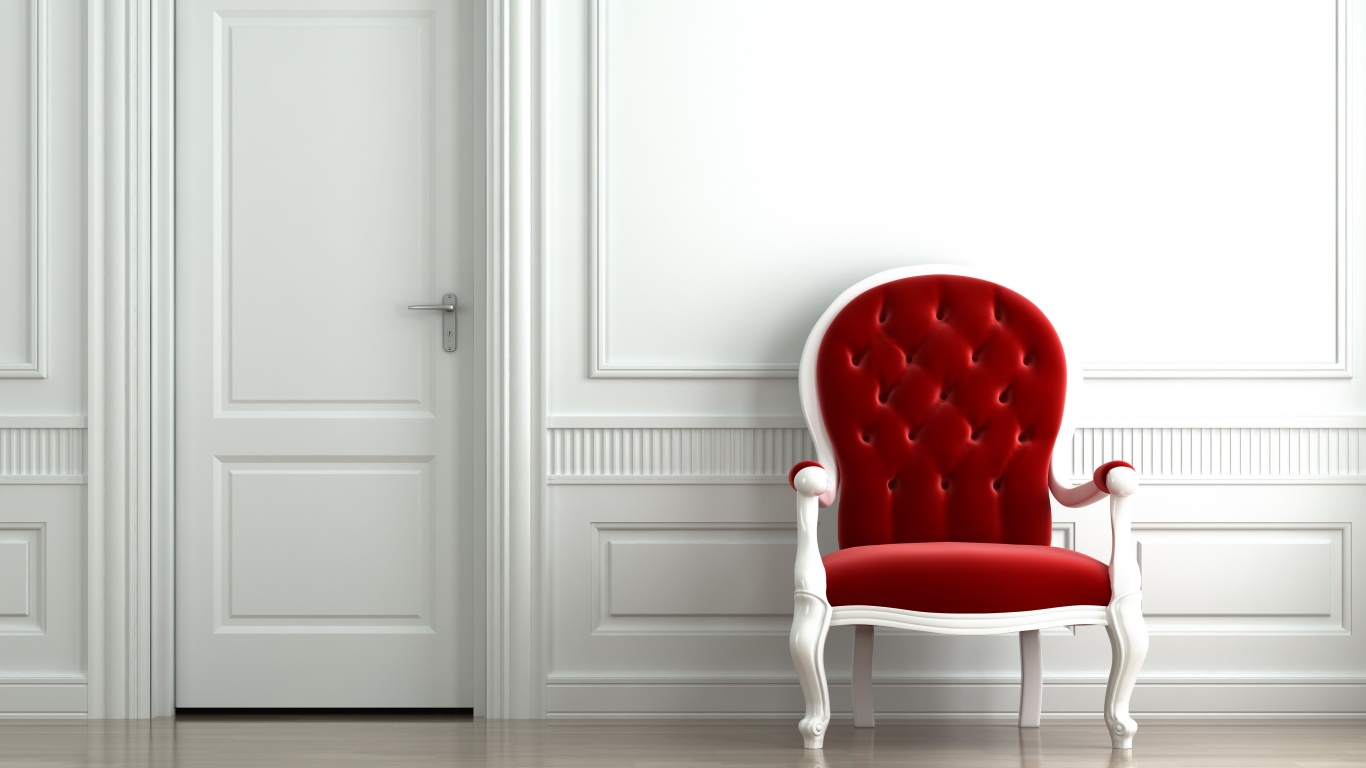 «красное кресло в белой комнате»