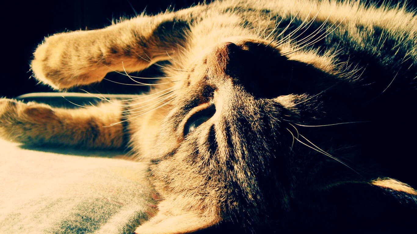 Обои для рабочего стола «Нежащийся кот» 1366х768 с фильтром vibrance (оригинал 2048х1536)