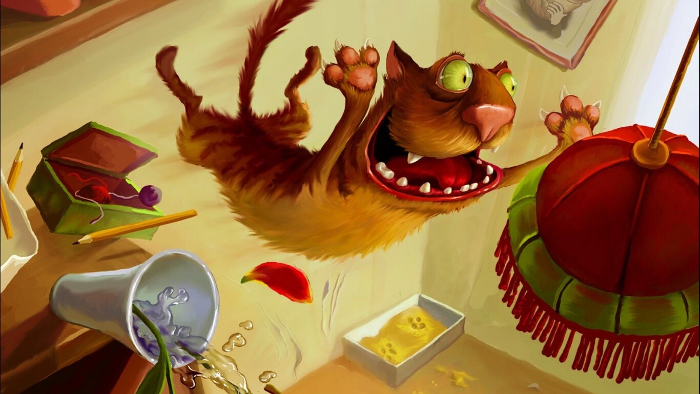 Обои для рабочего стола «Бешенный кот» 1366х768 с фильтром vibrance (оригинал 1600х1200)