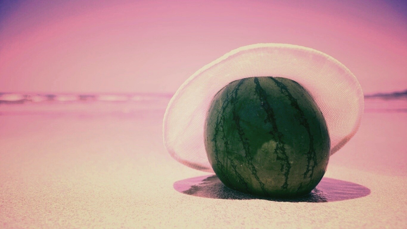 «Арбуз в летней шляпке на пляже»