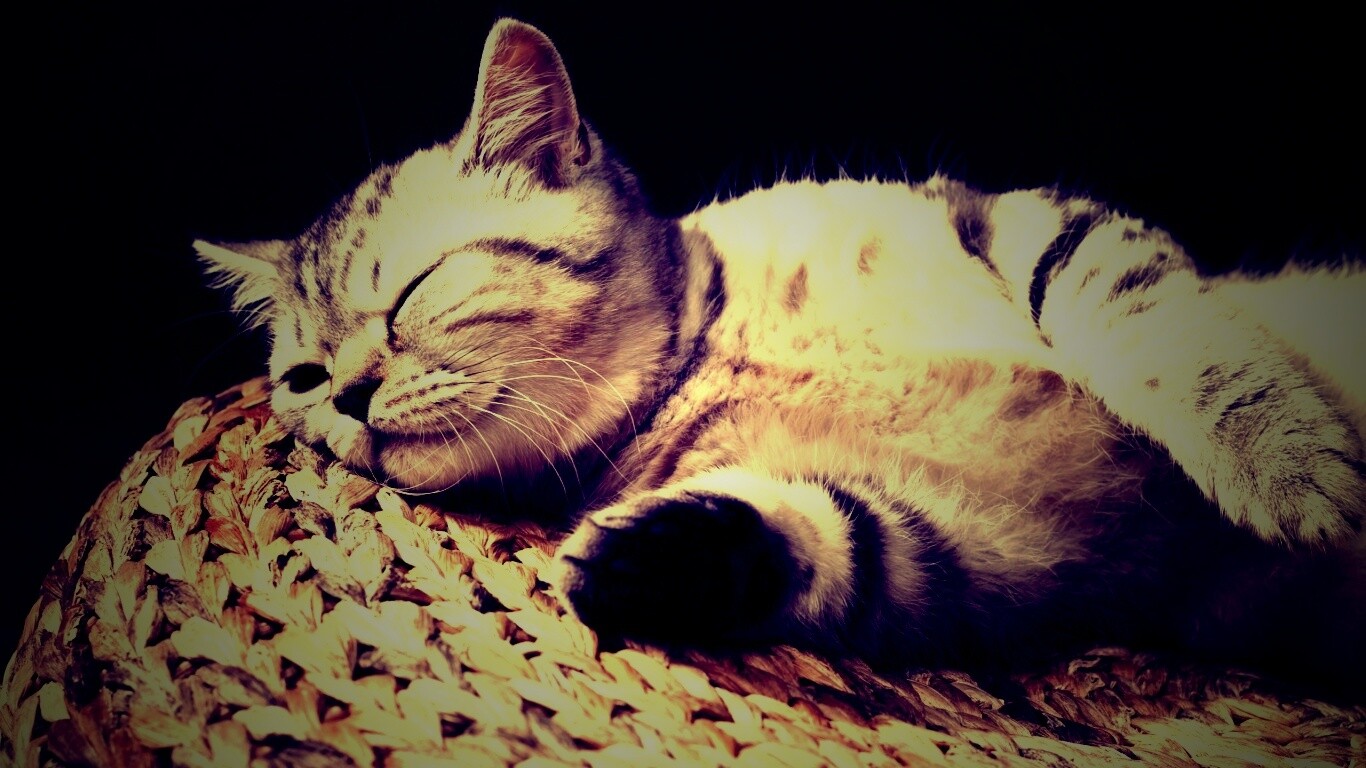 «Пушистый кот спит на корзине»