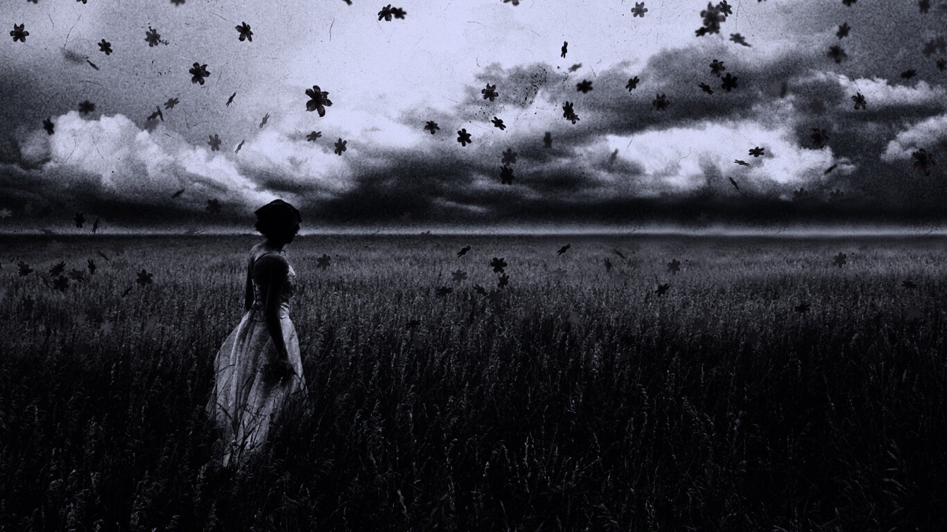 «Грустная девушка в поле травы»