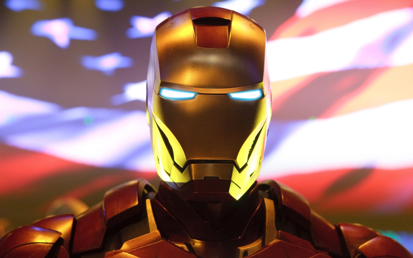 «Железный человек на фоне американского флага»