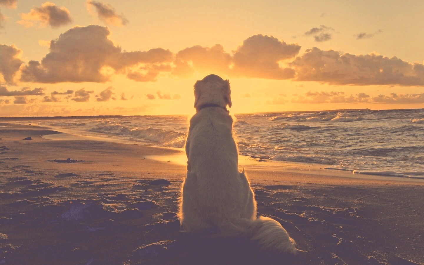 «Собака наблюдающая закат на пляже»