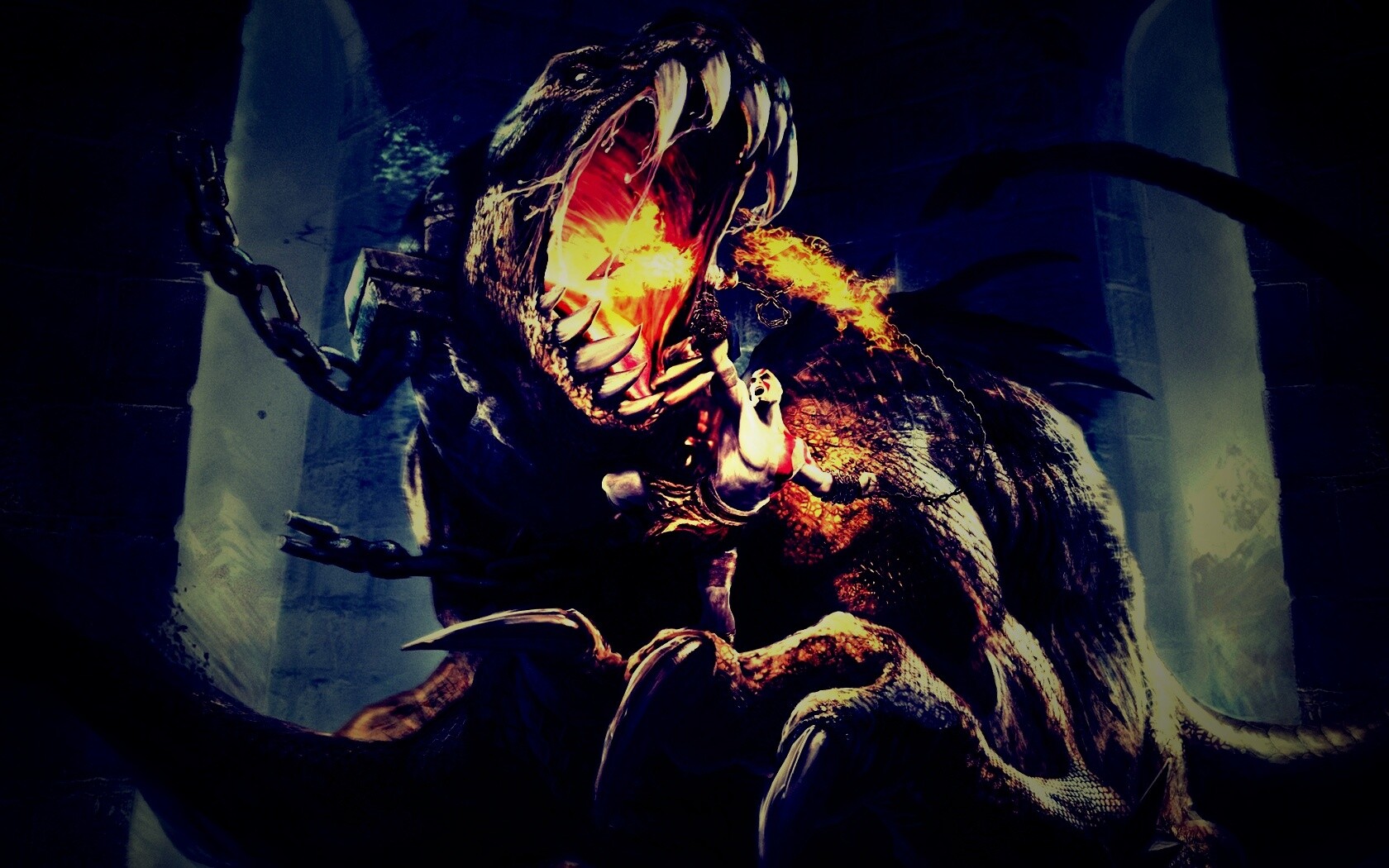 «Кратос против динозавра»