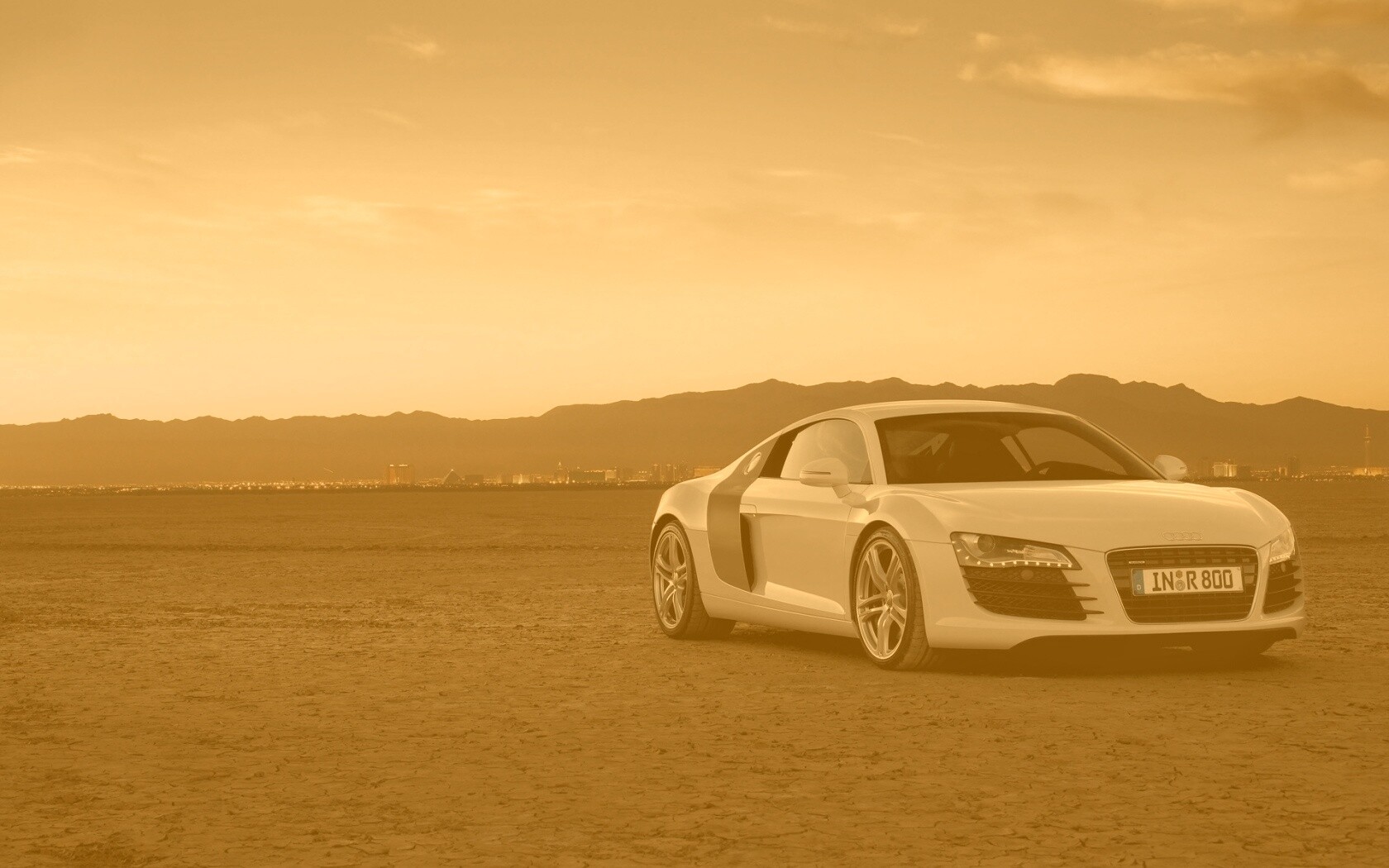 «Белоснежная Ауди Р8 в пустыне»