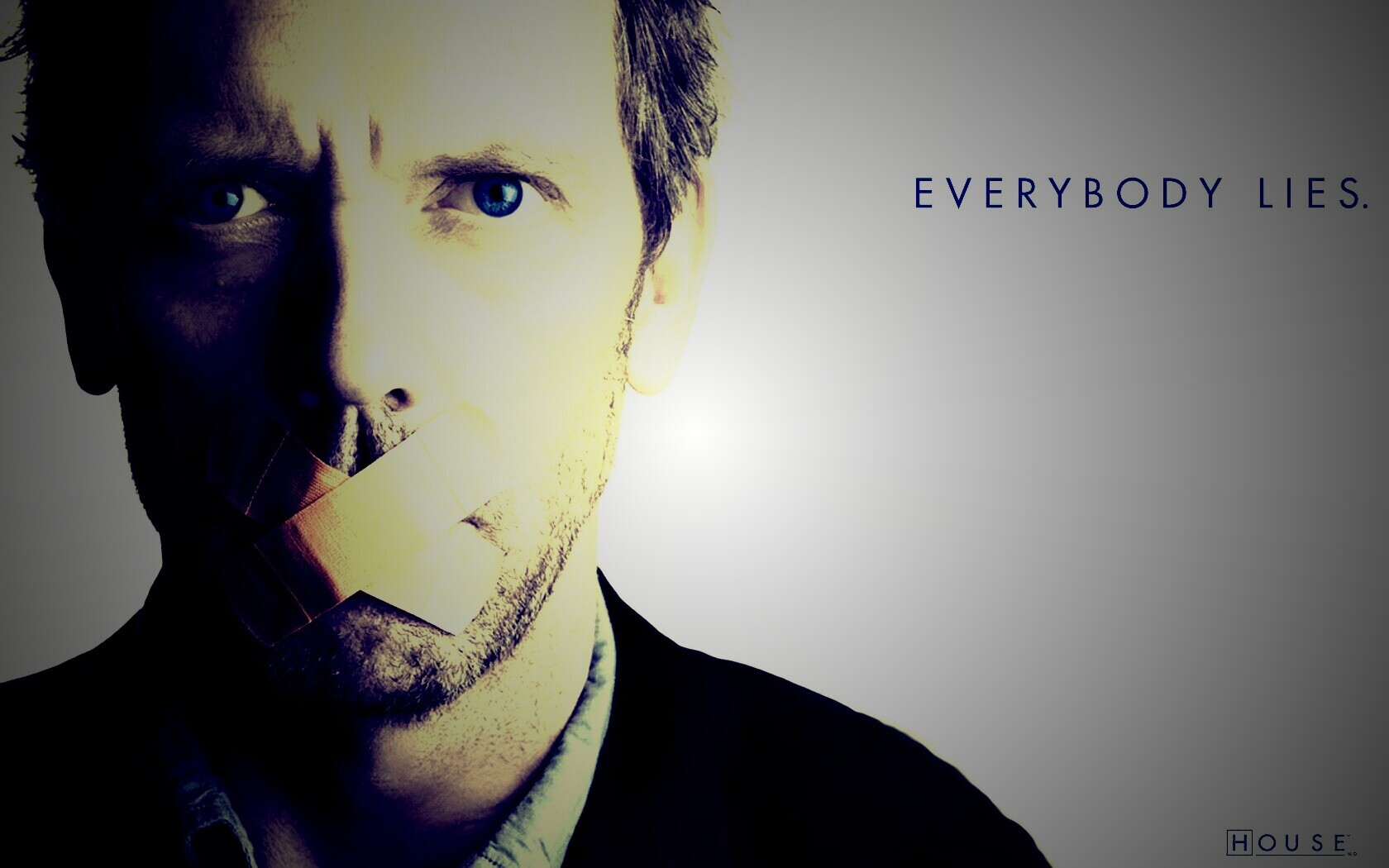 Обои для рабочего стола «Хаус с пластырем на рту» 1680х1050 с фильтром lomo (оригинал 1680х1050)