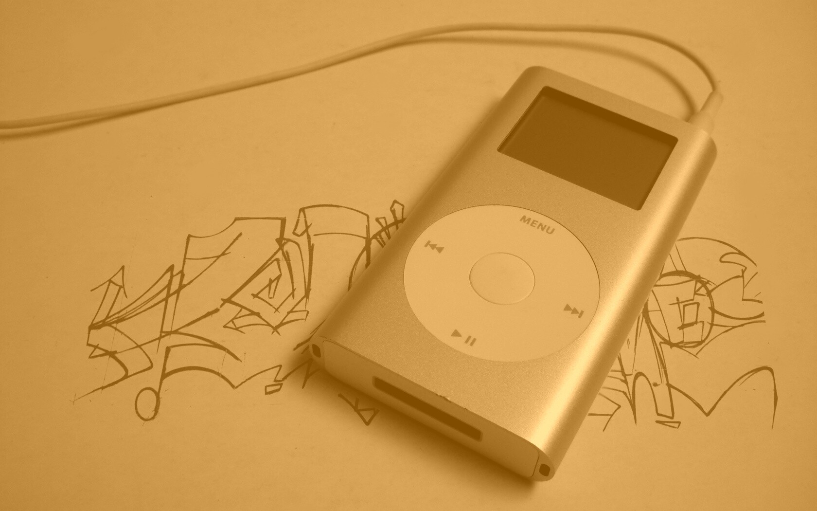«iPod на лиске с граффити»