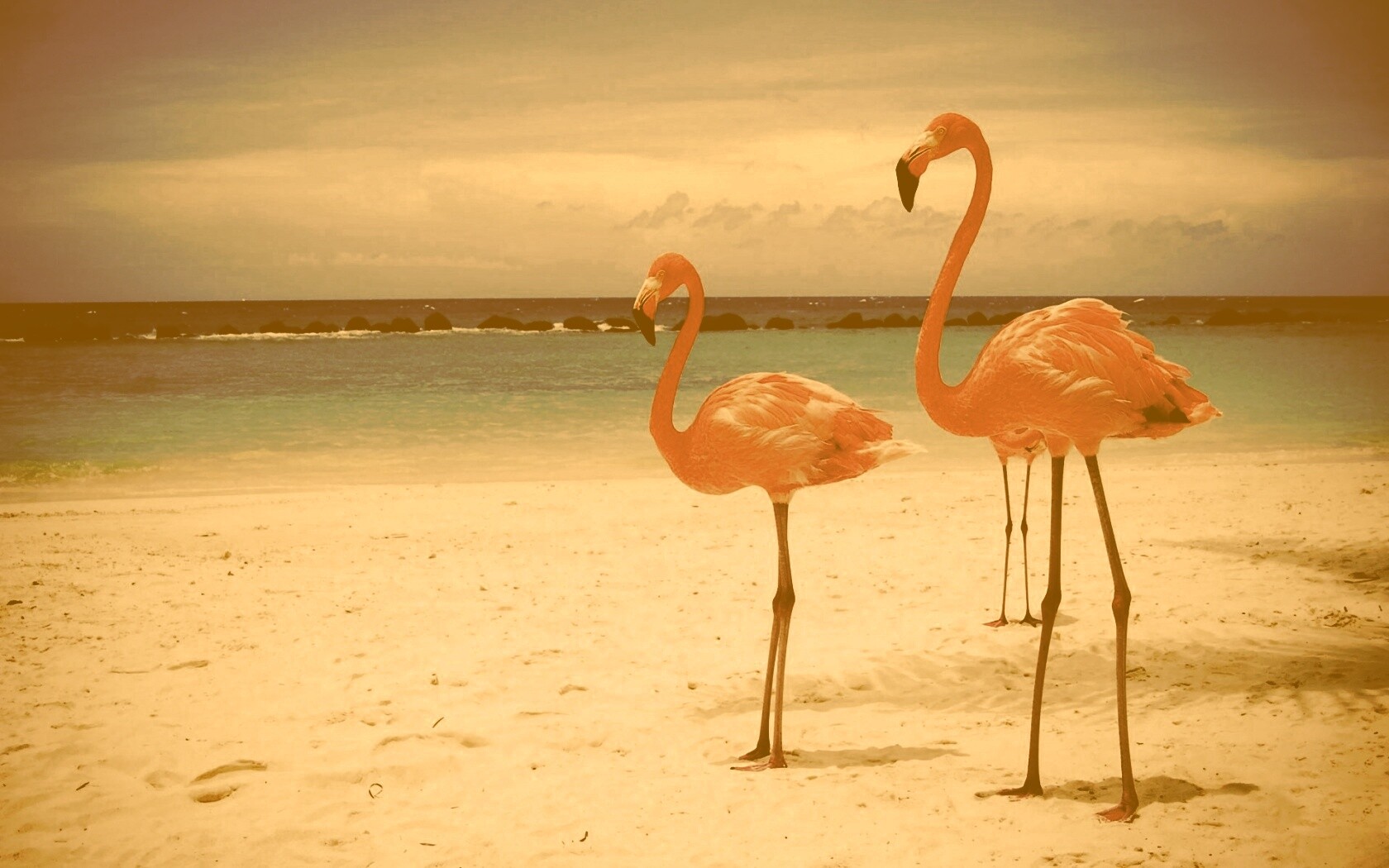 «Розовые фламинго на пляже»