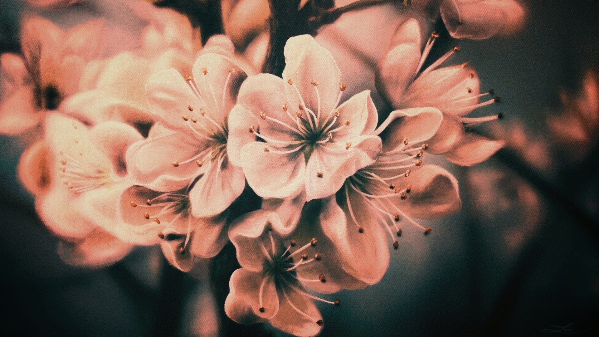 Обои для рабочего стола «Яблоня в цвету картина» 1920х1080 с фильтром earlybird (оригинал 3248х2335)