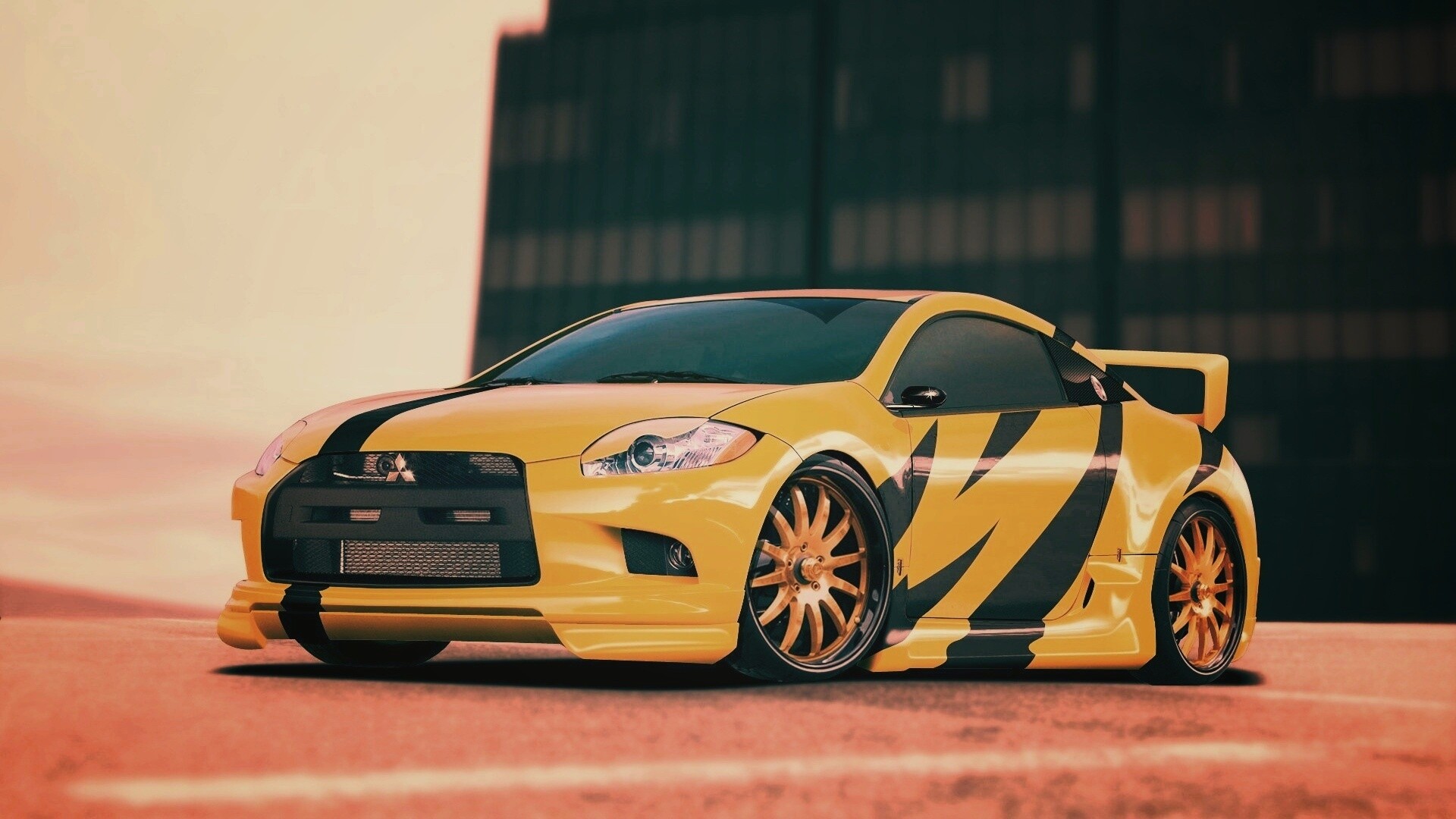 «Mitsubishi жёлтого цвета с черными полосами»