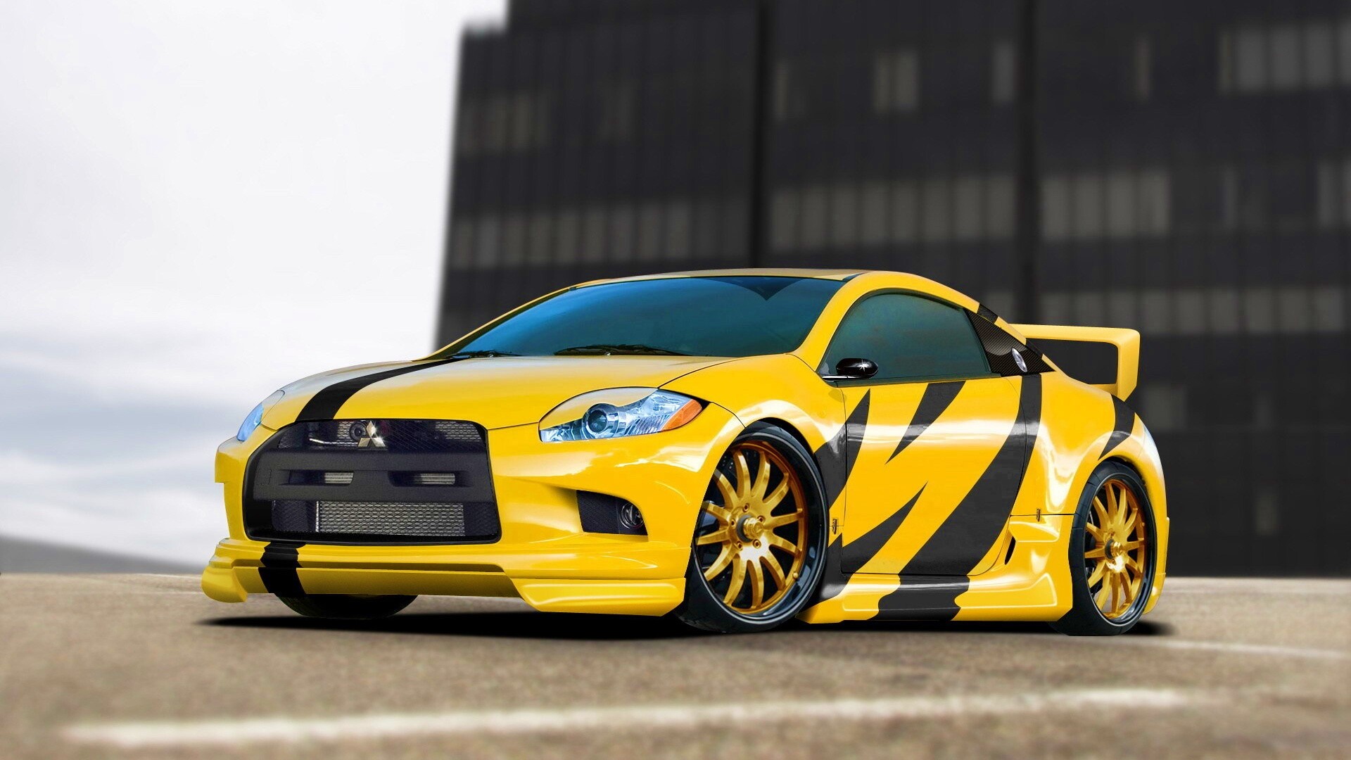 «Mitsubishi жёлтого цвета с черными полосами»