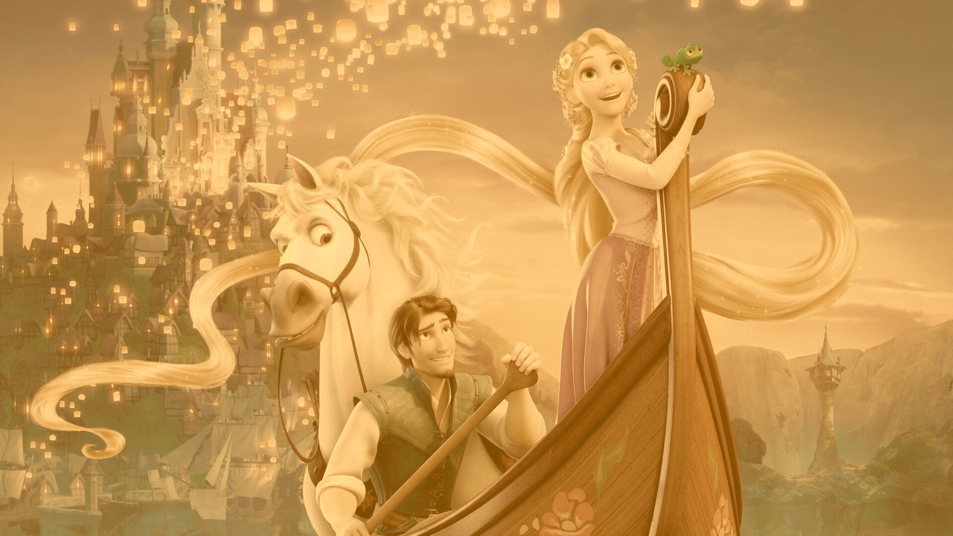 «Рапунцель принц и конь в лодке»