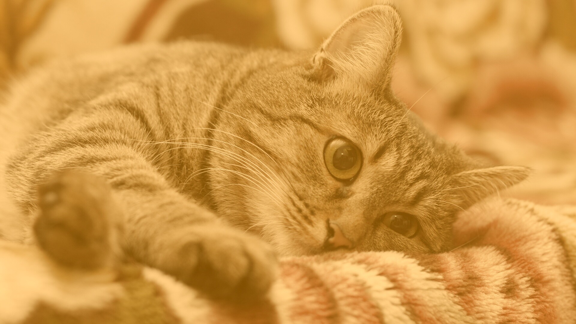 Обои для рабочего стола «Полосатая кошка» 1920х1080 с фильтром kelvin (оригинал 3888х2592)