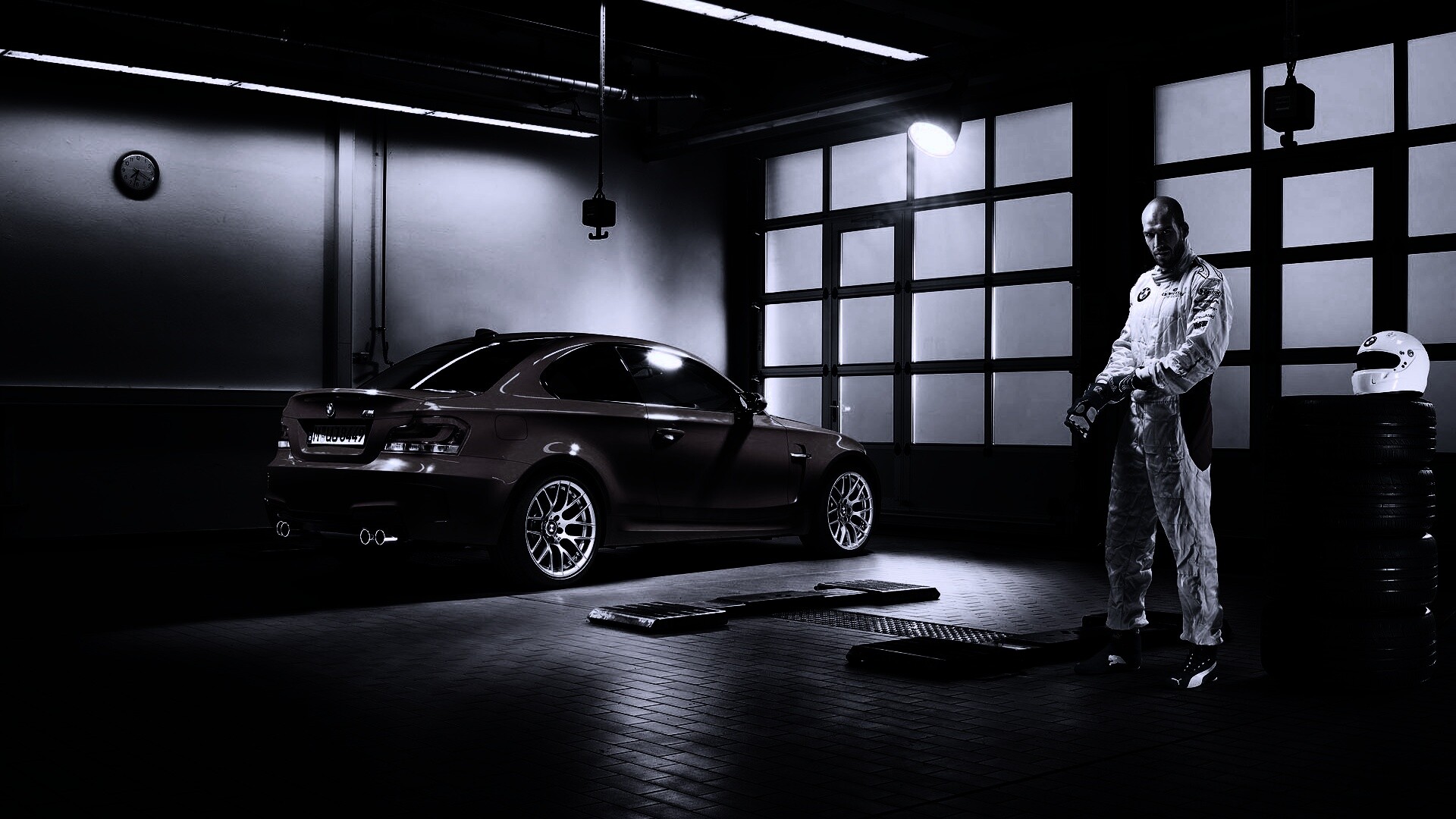 «Гонщик и BMW M1 в гараже»