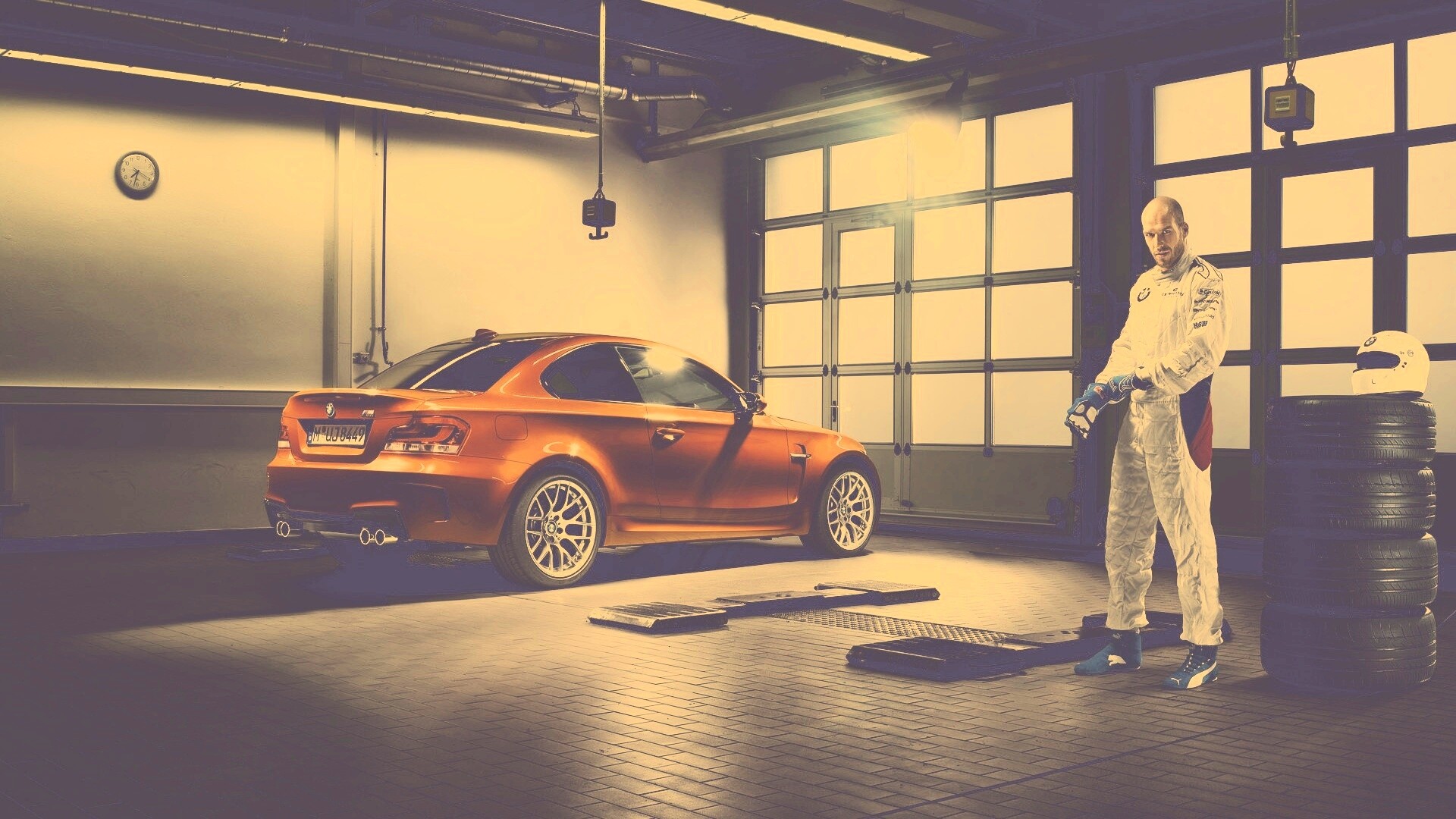 «Гонщик и BMW M1 в гараже»