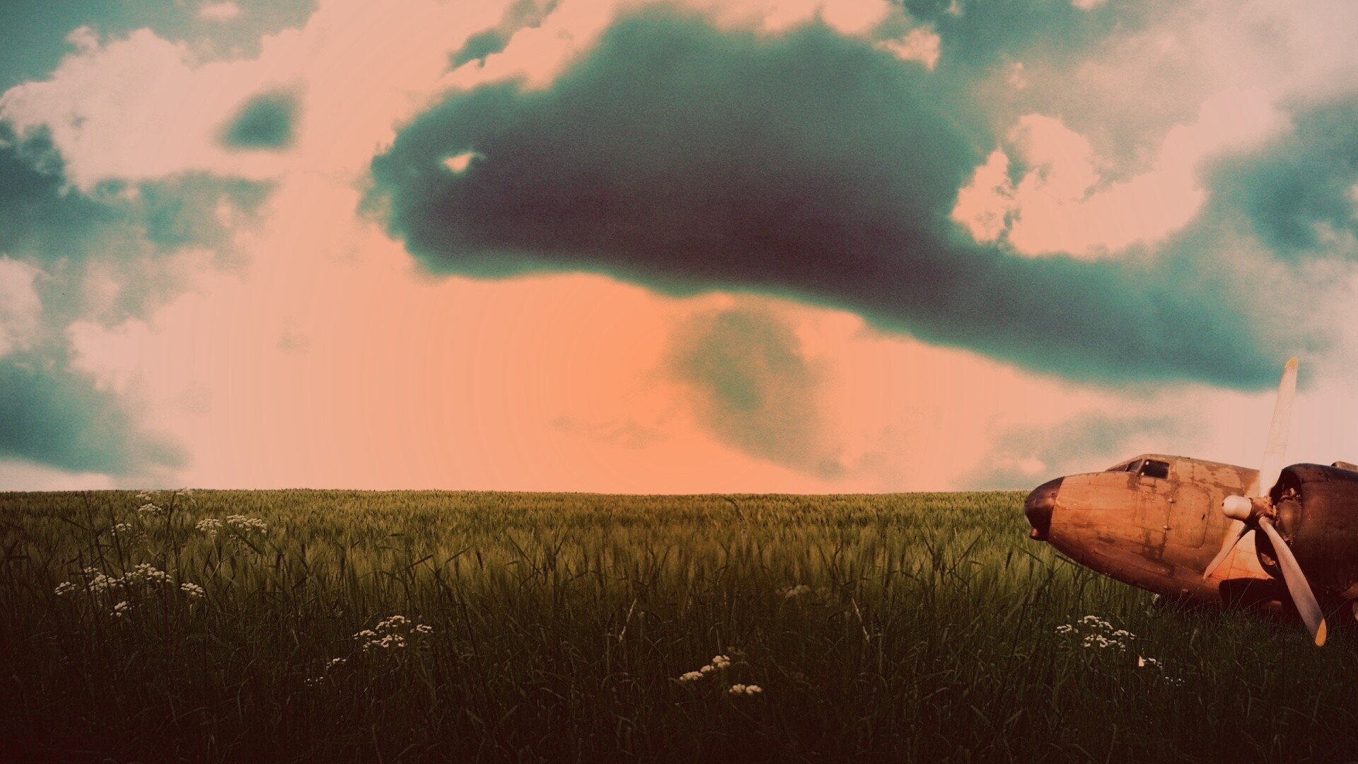 «Старый ржавый самолет на лугу»