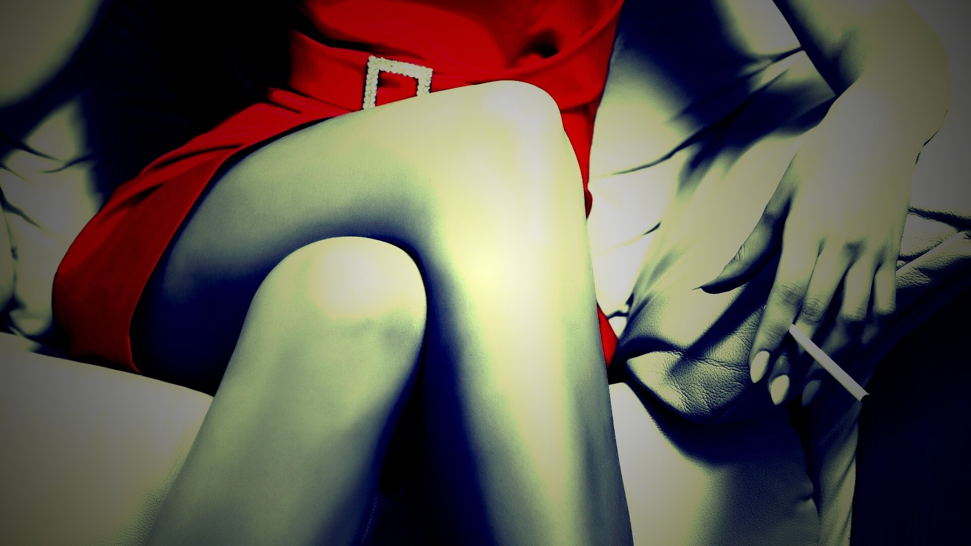 Обои для рабочего стола «Ножки, платье и сигарета» 1920х1080 с фильтром lomo (оригинал 2560х1600)