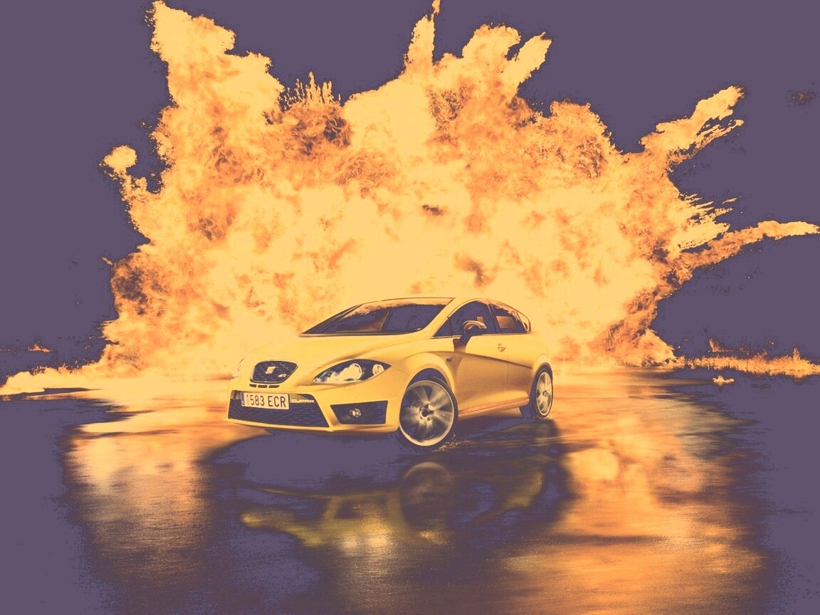 Обои для рабочего стола «Желтый Леон на фоне взрыва» 1152х864 с фильтром nashville (оригинал 1920х1200)