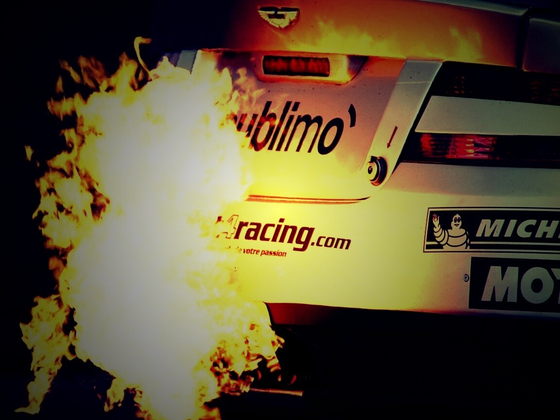 «Огонь из выхлопной трубы гоночного Aston Martin»