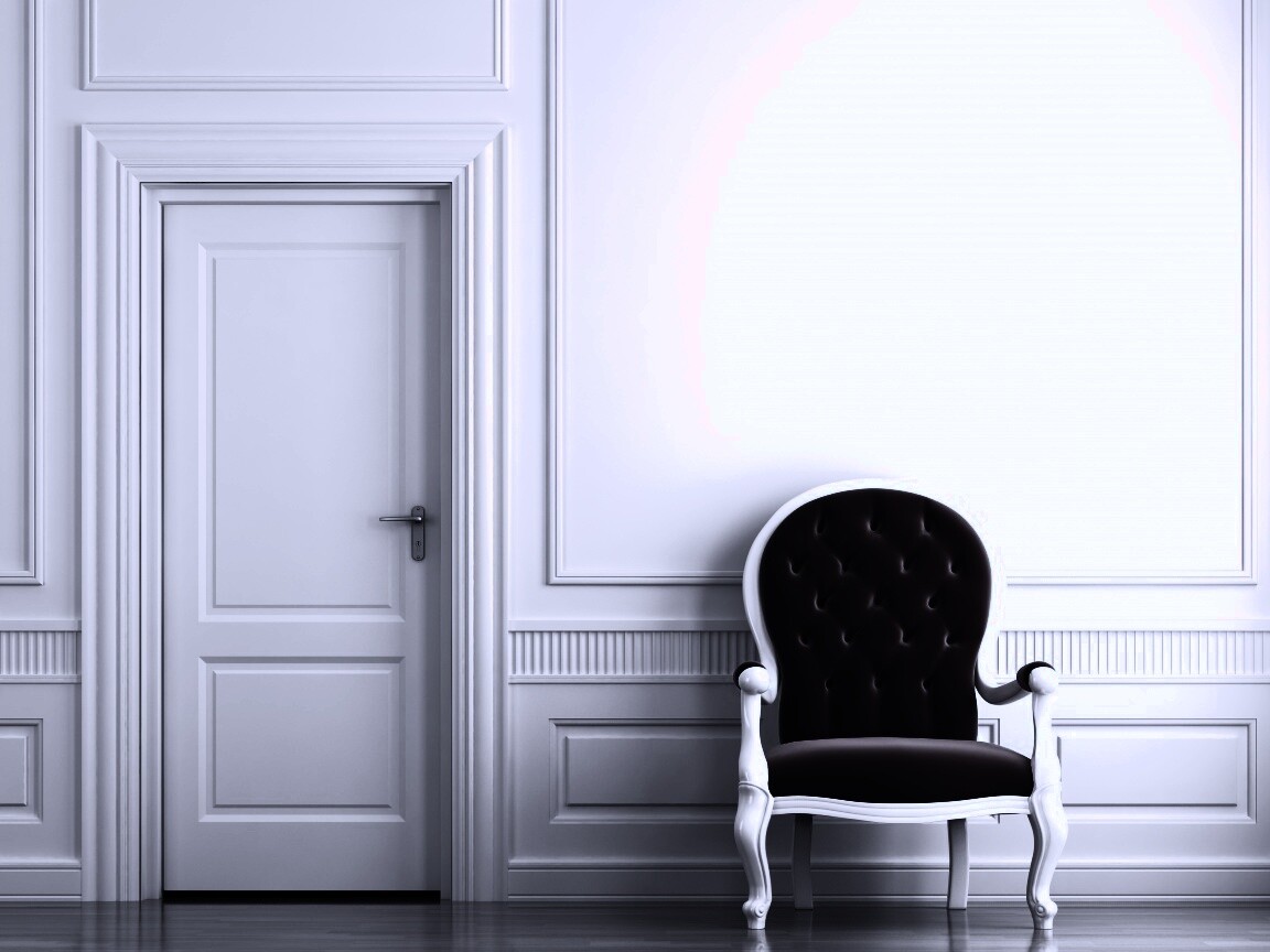 «красное кресло в белой комнате»