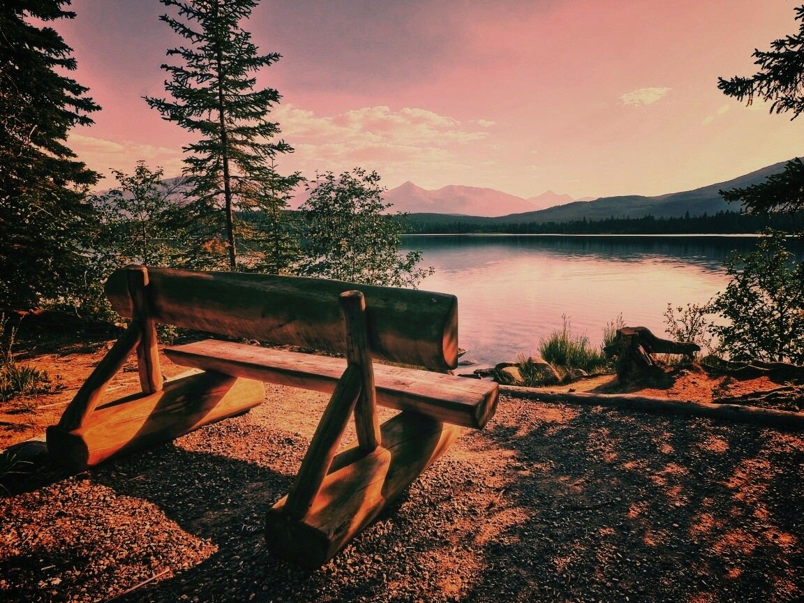 «Деревянная скамья на берегу озера»