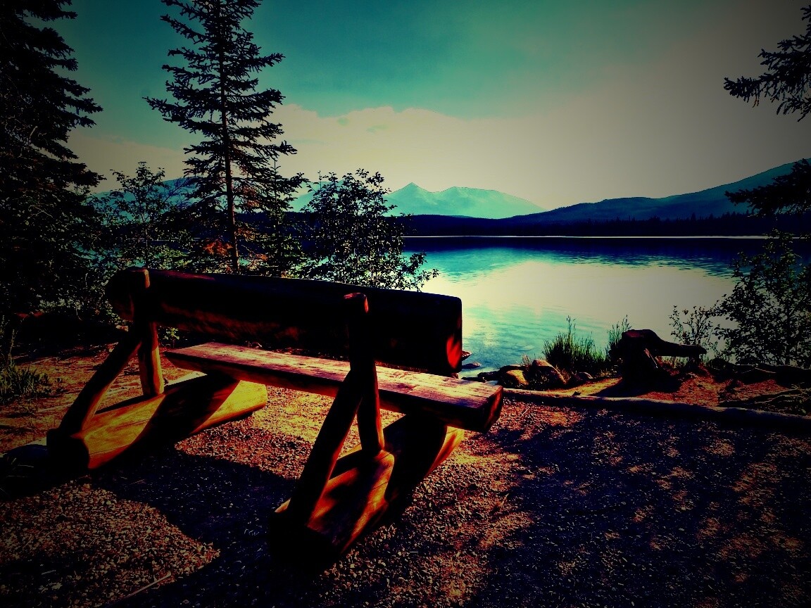 «Деревянная скамья на берегу озера»