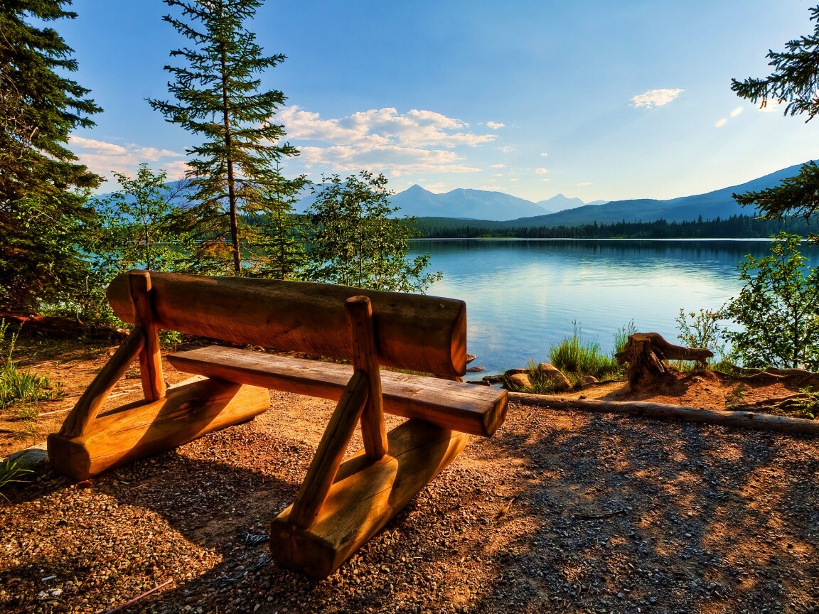 «Деревянная скамья на берегу озера»