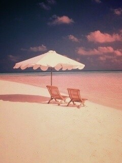 «Песчаный пляж с двумя жезлонгами»